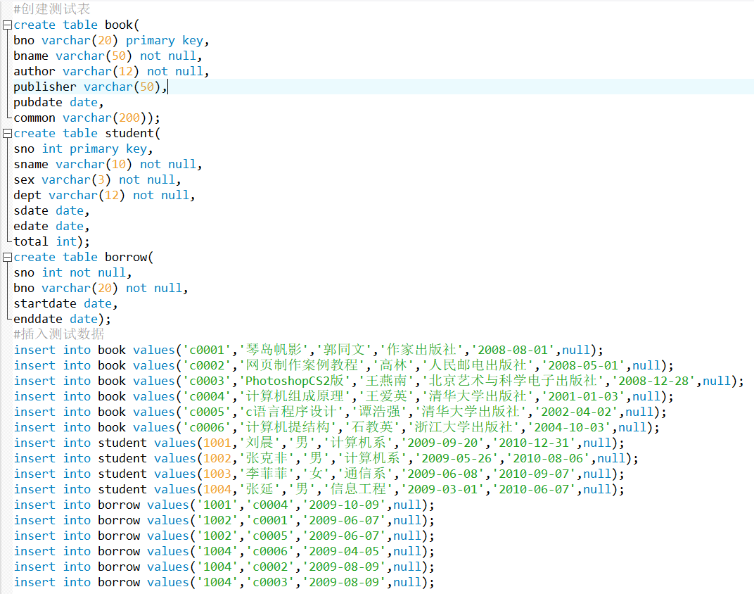 - 在读者信息表上建立触发器,删除某个读者信息时,删除借阅表中相应的记录。