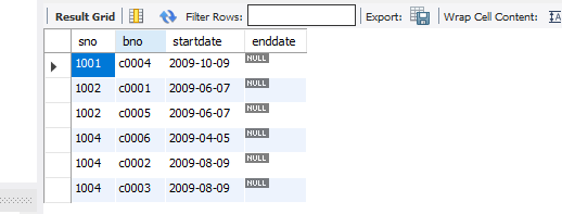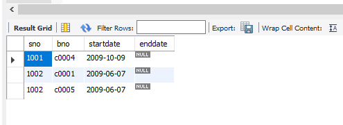 - 删除编号为1004的读者信息后查看借阅信息表: